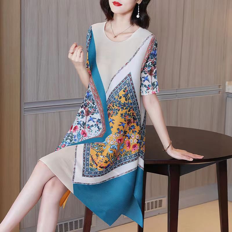 遮肚顯瘦時尚印花大擺裙