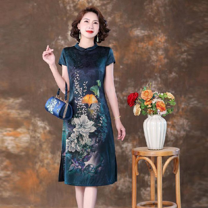 高檔洋氣真絲印花連衣裙